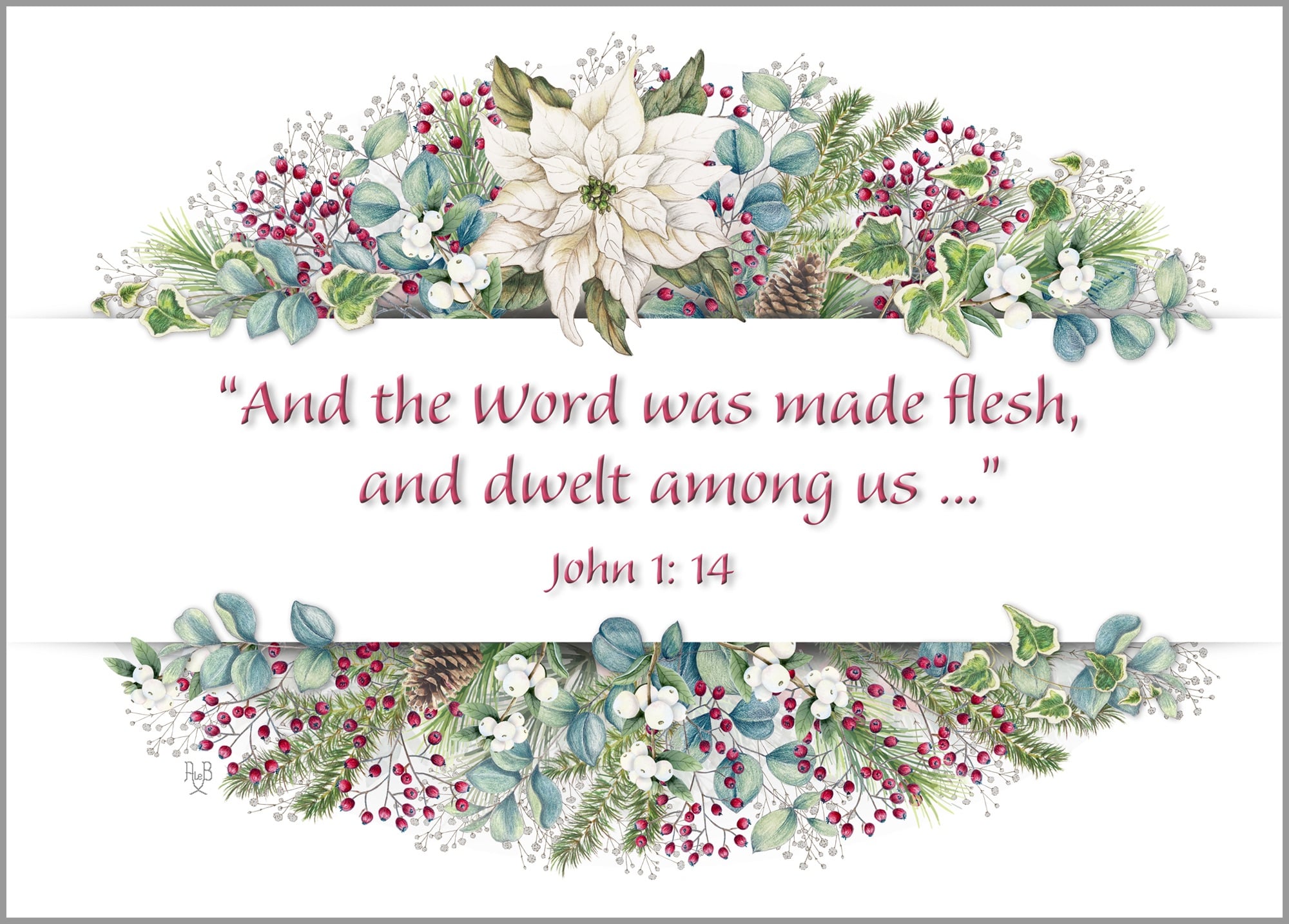 From heaven’s place into our realm, ‘The Word’ in flesh became,